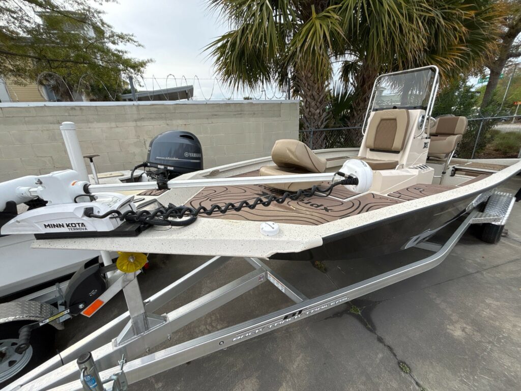 HARDWARE: STAINLESS STEEL: STEERING WHEEL – FOLD DOWN DECK CLEATS – ROD HOLDERS – CUP HOLDERS
