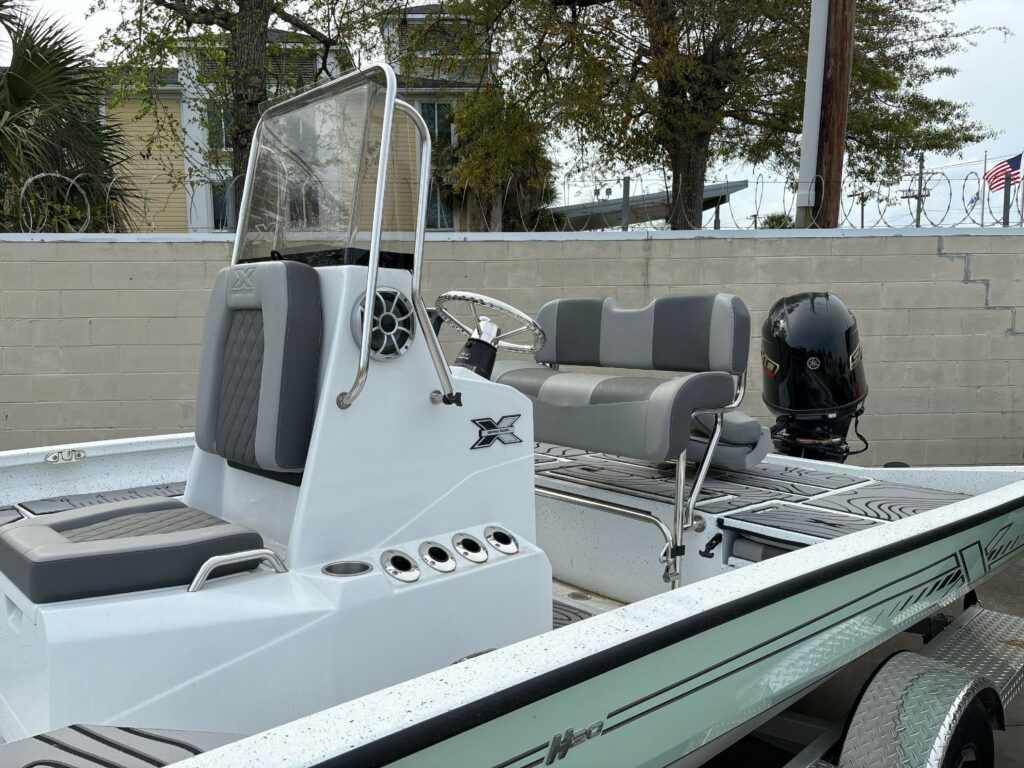 SEATING: COLOR: FLINT- CONSOLE CUSHIONS- 2 FISH SEATS- JUMP SEAT- CONTOURED LEANING POST WITH CUSHION