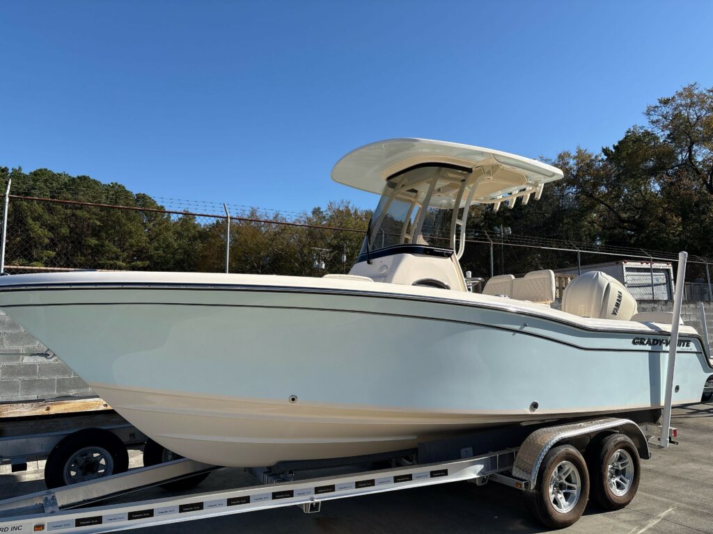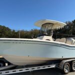 Head – Lockable Console w/Portable Head, Stand up Head Area, LED Lighting, Storage & Composite Cherry and Holy Sole Seating – Molded Forward Console Seat w/Cushion, Backrest & Insulated Storage Underneath Steering – Hydraulic Tilt Steering Wheel – 316 Grade Stainless Steel w/Knob T-Top – Fiberglass w/Painted Aluminum Frame, Storage net, LED Spreader Lights, Rod Holders (4), tri-Colored (Red, Blue, White) LED Recessed Lights (3) & Radar Flat Windshield – Scratch Resistant Acrylic Integrated w/T-Top