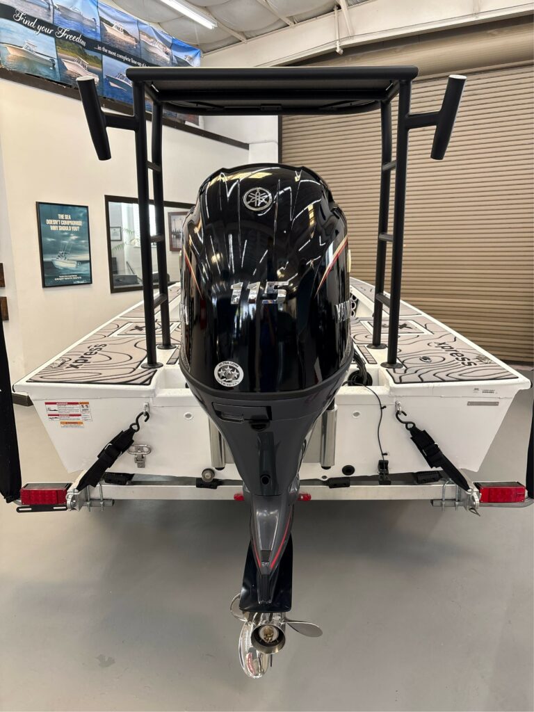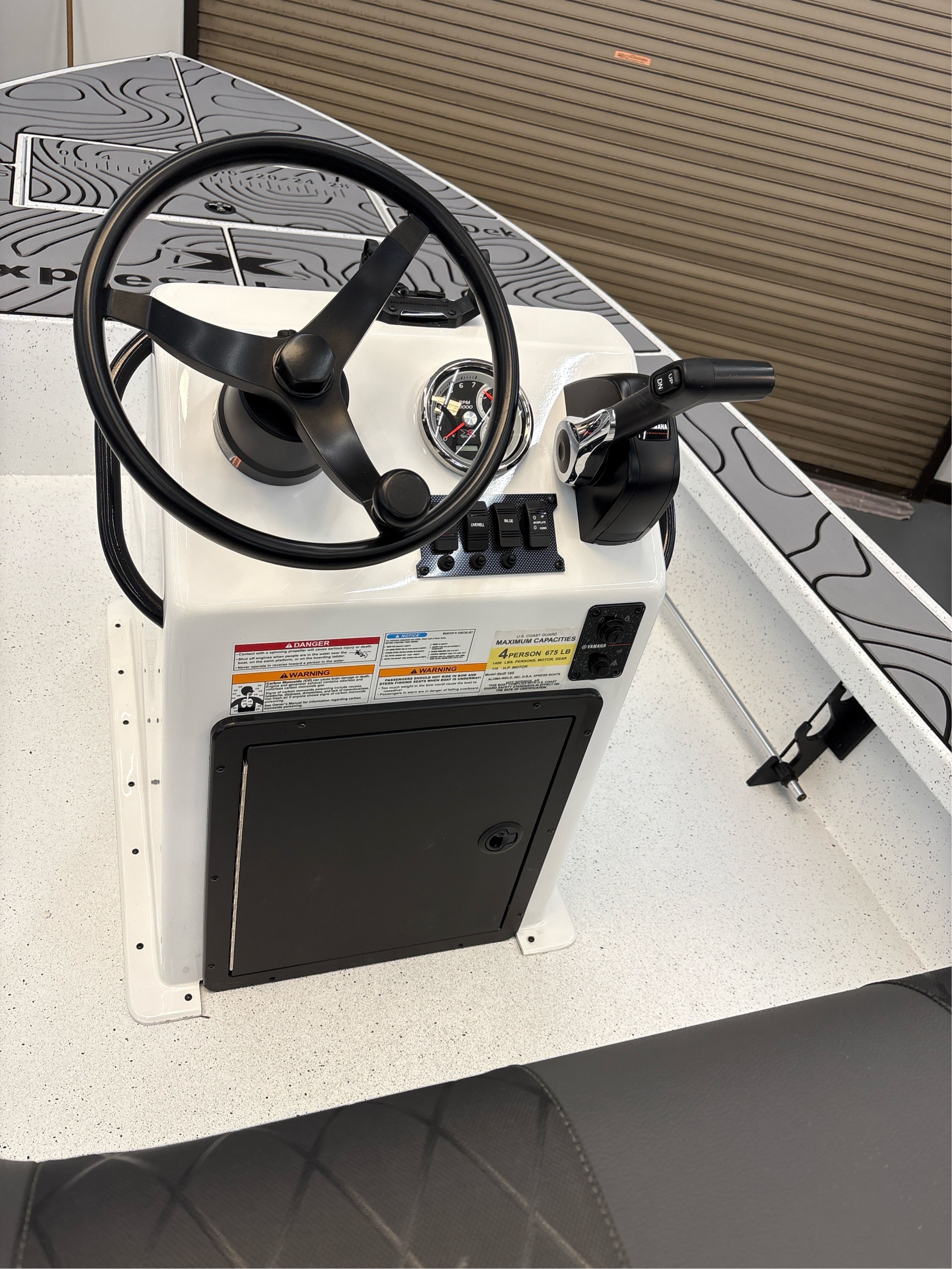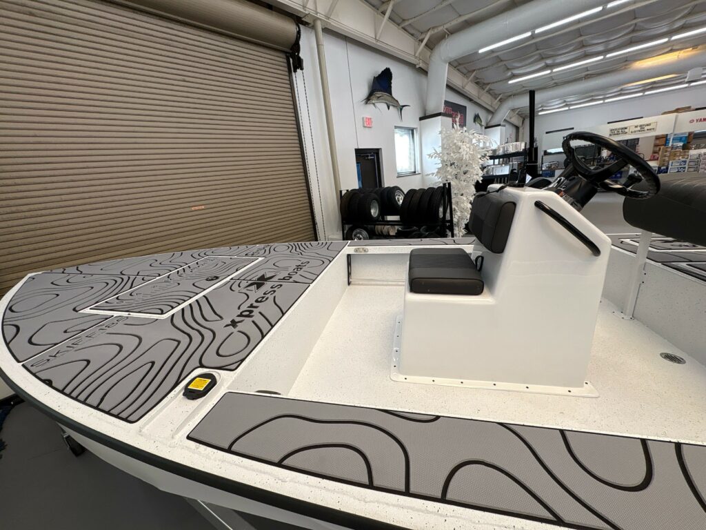 • HULL COLOR/CONSOLE – WHITE — SEAT CUSHION COLOR – CHARCOAL — CONTOURED LEANING POST CUSHION – CHARCOAL